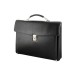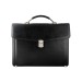 Leather, with flap closure. Padded carrying handles. Main compartment has padded laptop pocket, file section and organizer panel. Quick access back pocket. Padded adjustable shoulder strap. 16" x 12" x 3.5". Domestic.